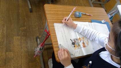 本日の3時間目。4松さんは国語の授業です。「こわれた千の楽器」の登場人物を探していました。10人以上いるので、探すのが大変みたいです。4年生は「○○さんの言いたいことは。」とか「これで○つ目ですね。」等の言葉を使って上手に交流していました。