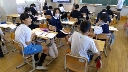 本日の2時間目。6梅さんは国語の授業です。「サボテンの花」という物語の会話文に着目して「サボテンにとっての『生きる』ということ」について考えていました。前に発言した友達の意見を復唱して、自分の意見と比べて話す、前に述べた友達の意見をまとめてから、自分の考えを話すなど、すごい学習をしています。