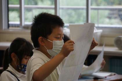 ある子が、「今、私たちがいる詫間小学校は、ここです。」と、教えてくれました。また、「校長先生の家は、どの辺ですか?」と聞かれたので、「高瀬町だから、この辺りかな!」と地図を指で指しました。