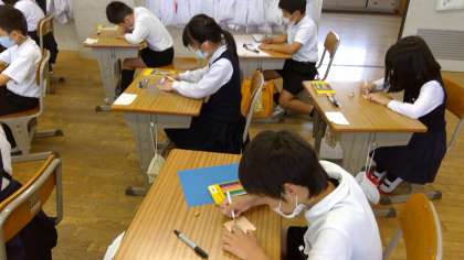 朝の活動。3松さんは、晴れていたら体育集会でリレーだったのですが、雨なので漢字ドリルをしています。そして、本日の1時間目。3松さんは、学活の授業です。今日は、なかよし集会に向けて、学級のめあての周りに、一人一人の「にこにこ笑顔」を描いて貼るみたいです。仲良し集会が楽しみですね。