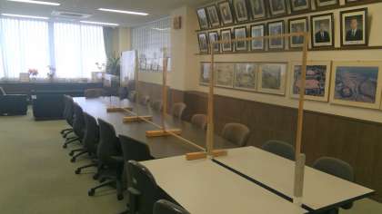 校長室の会議用テーブルは、とても細長いのが特徴です。そのため、対面する人との距離が近くなってしまいます。
