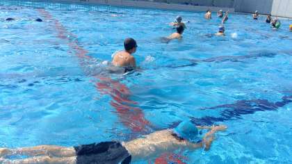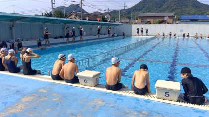 6年生のプール開きの時に、三豊ケーブルテレビが取材に来ました。