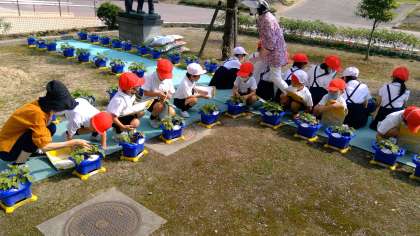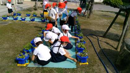 肥料をアサガオに肥料をあげて、今日の生活科のお勉強は終わりです。