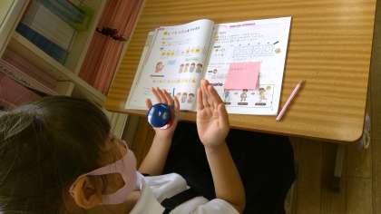 本日の1時間目。1梅さんは音楽の授業です。「リズムを正しく打つ」お勉強です。カスタネットを一人一人持って、「ブン ブン ブン」の曲に合わせて完璧にリズムを打つことができました。