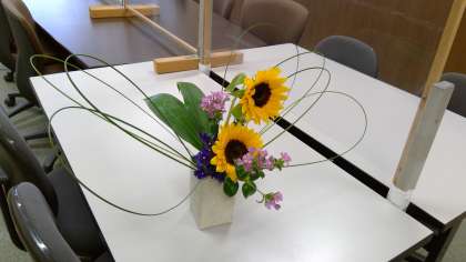 クラブ活動の後は、お花クラブの皆さんが、毎回、「生け花」をプレゼントしてくれます。昨日の夕方、写真の生け花を校長室にと、いただきました。いつもありがとうございます。