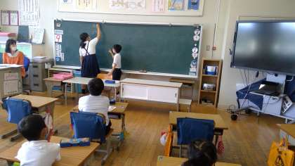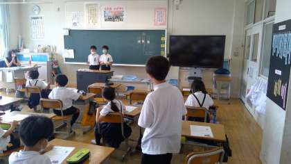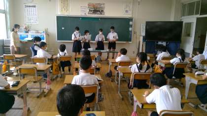 自治会別児童集会は、今年度は朝の活動の時間に行いました。1年生は、上級生が教室までお迎えに来てくれて、それぞれの自治会ごとに夏休みについての話し合いがありました。