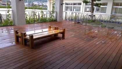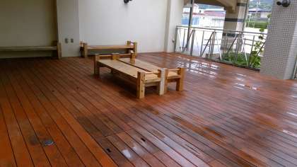 これまでは、ウッドデッキの板の表面がとても汚れていて、雨が降るとツルンと滑りやすくなり危険でした。今日の夕方、雨が降りましたので確認しましたが、全く滑りません。リニューアルしたウッドデッキをぜひ使ってください。