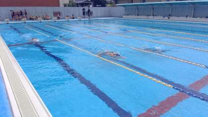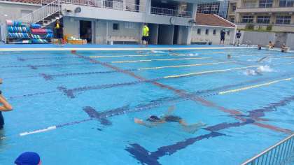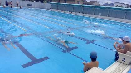 平泳ぎの最終組と、記録測定が終わった後の、「お楽しみリレー」の様子です。