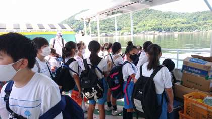 船の中です。船内とデッキに分かれて乗り込みました。帰りは中と外が交代だそうです。
