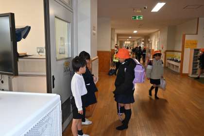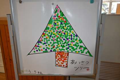 今週は、「あいさつ週間」です。生活委員さん、児童会役員さんに加えて、ボランティアの子どもたちも「あいさつ運動」に参加して、あいさつをしてくれたお友達にシールを渡しています。先月の「あいさつツリー」が、今月は、色鮮やかに飾られていきます。