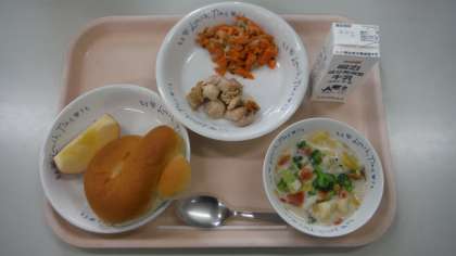 いつも慌ただしく食べている私の給食の食べ方に、新しい楽しみ方を教えてくれたように感じました。今日はいつもよりも少し時間をかけて、いつもよりも少し多めの感覚で給食をいただきました。Tさん、ありがとうございます。(藤本)