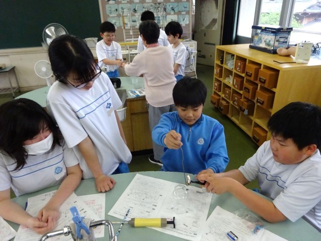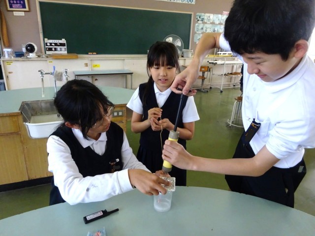 実験大好き6年生 公開日 2025/05/01 更新日 2025/05/01 6年生 6年生の理科では、物の燃え方について学習しています。「どうしてふたを閉めるとろうそくの火は消えるのか」という疑問から始まり、今日は気体検知管という器具を使って空気中の気体(酸素や二酸化炭素)の割合を調べ、酸素が使われて減るから火が消えるんだ!というところまで気付くことができました。なんで?どうして?とこれからも不思議を追究して実験していきます。