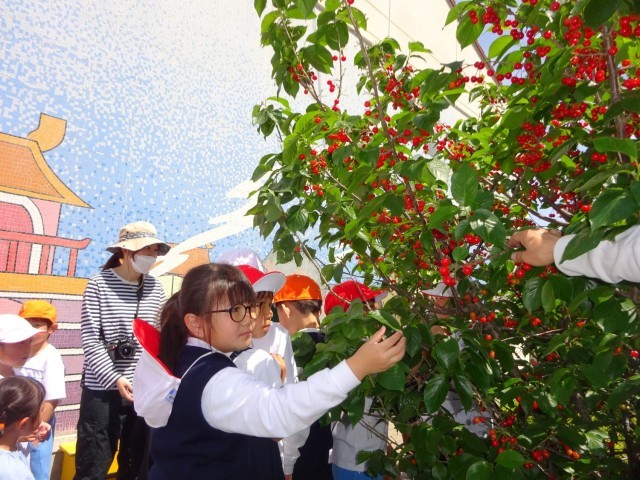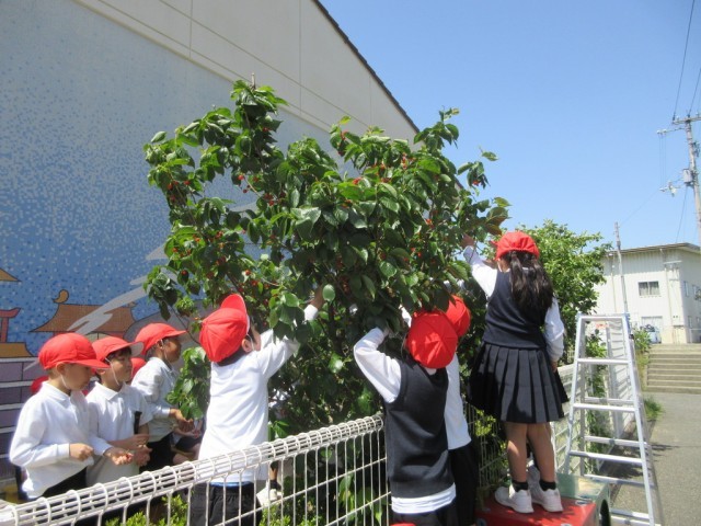 サクランボ狩りをしたよ 公開日 2025/05/07 更新日 2025/05/07 1年生 毎年、お隣の詫間幼稚園内にあるサクランボの木には、たくさんサクランボがなるそうですが、今年は例年にも増して豊作とのこと。幼稚園児だけでは食べきれないということで1年生にもサクランボ狩りの声がかかりました。昨年度、詫間幼稚園でいた人は手慣れたものです。初めて体験した子も、上手にちぎって食べることができました🍒甘酸っぱくてとても美味しかったです。幼稚園の先生方ありがとうございました!