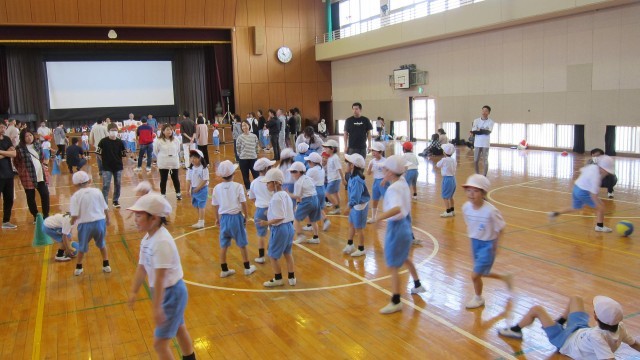 まず、みんなでしっかりと準備運動をして、転がしドッジボールとドッジボールをしました。何日も前から子どもたちはこの日をとっても楽しみにしていました。お家の方と一緒に活動をしてどの子もにこにこ、嬉しそうな笑顔が見られました。保護者の皆さん、お疲れさまでした。