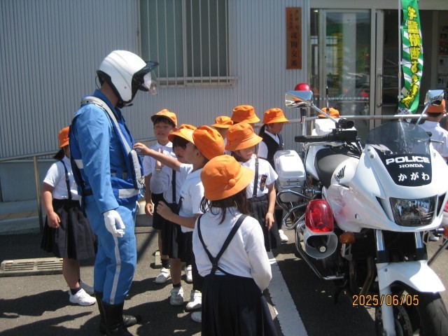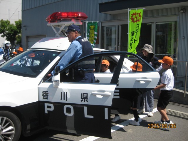 詫間交番に行ったよ 公開日 2025/06/13 更新日 2025/06/09 2年生 先週の木曜日に、2年生は詫間交番に行きました。事前に考えた質問に答えていただきました。パトカーの中を通らせてもらったり、設備について教えてもらったり、有意義な時間を過ごしました。警察官の方の話を聞いて、私たちの安全のために一生懸命働いてくれていることを学んだようです。