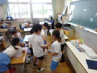 1年竹組で、ALTの授業がありました。野菜や果物の言い方を勉強し、すごろくやカ...