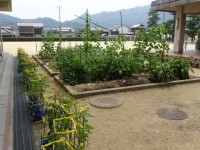 7月に入り、給食には夏らしい食材が登場しています。体育館前の農園や2年生の前に...