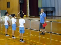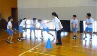 体育館の中では、クラスで輪になり「象」になり切るゲームをしていました。先生に当...