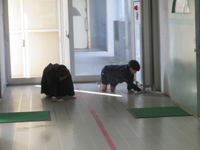 2時間目、1階廊下、図工室、児童玄関、プール近くの通路、保健室付近の廊下を掃除してくれている5年生の姿がありました。国語の「提案します、一週間チャレンジ」の学習で、「日頃お世話になっている用務員さんを手助けしよう」という提案を実践していたということでした。黙々と一生懸命に掃除に取り組んでくれたおかげで、大変きれいになりました。