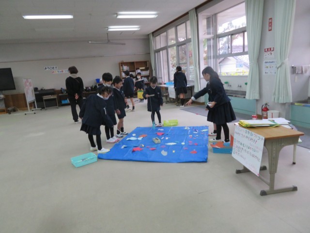 2年生は、生活科で手作りおもちゃを作って遊ぶという学習をしました。そして、去年、2年生が自分たちをおもちゃまつりに招待してくれて楽しかったという思いから、1年生を招待しておもちゃまつりを開こうと頑張ってきました。インフルエンザの流行で開催が伸びましたが、工夫をこらしたおもちゃコーナーに、1年生は大喜びでした。