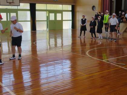 今日から6日間、三大プロジェクトの「なかよし遊び」が実施されます。今回の種目は、「王様じゃんけんおにごっこ」です。タッチしてじゃんけんをし、負けたら座ります。、座っている見方を生き返らせるために、王様が台からおりてその仲間にタッチします。その間に敵にタッチされたらじゃんけんをして負けたら終わりです。今日は高学年が、4チームで第一回戦をしました。明日は、どんな作戦でいくのでしょうか。楽しみです。