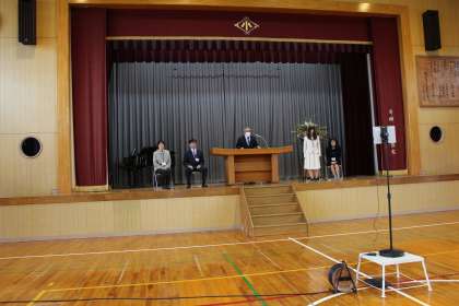 令和3年度が始まりました! 公開日 2021/04/07 更新日 2021/04/07 学校全体 4月6日(火) 松崎小学校の令和3年度が始まりました。 新任式、始業式は体育館と各教室をつないで行いました。 写真 子どもが一人もいない新任式