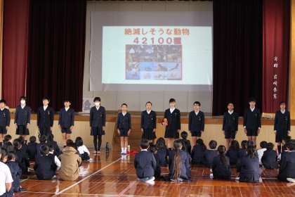 今回のさわやかタイムの発表は6年生でした。総合の時間に、SDG'Sについて学習してきたことをまとめて発表しました。全校生に、調べてきた問題について説明し、自分たちができることを伝えました。何か一つからでも、自分たちにできることを実行することが、SDG'Sの問題を解決するための第一歩だと思います。
