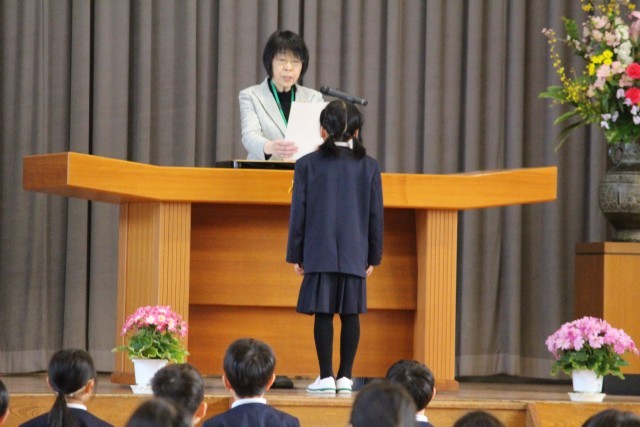 修了式では、各学年の代表者に修了証書と記念品を渡しました。きびきびとした態度で証書を受け取る姿は、大変立派で、一年間での成長を感じました。真剣に話を聞く姿勢も素晴らしかったです。子どもたちには、それぞれの学年の頑張りについて話し、春休みには一年間の振り返りと次の学年の準備をしてきてほしいということを伝えました。一年間の子どもたちの成長は、学校においても、家庭においても、地域にとっても大変うれしいことです。日頃の学校へのご理解とご協力に感謝します。一年間ありがとうございました。