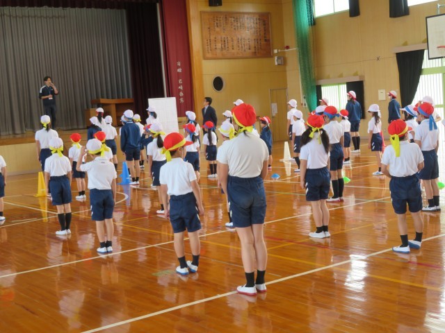 本日の運動会の全体練習は、雨のため、体育館で入場行進と開会式の練習をしました。先生の指示を静かに聞き、学年ごとに並んでいるところからスムーズに色別チームに並び直しました。今年の行進曲は「Lemon」という曲です。しっかり腕を振り、堂々と入場できるよう、集中して練習に臨んでいました。