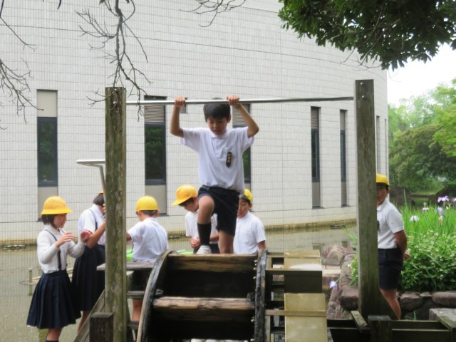4年生は、社会科の「水はどこから」という学習で、香川用水記念公園に見学に行きました。早明浦ダムや内場ダムに水を貯え、香川用水を通って、各家庭や農地に運ばれる過程を学んできました。じゃぶじゃぶ池という施設で、水車を回すなど、水となかよくなる時間もありました。楽しく学ぶ中で、教室での学びを深めることができたと思います。