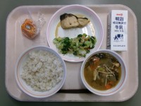 11月6日(木)麦ご飯牛乳はまちの照り焼き小松菜のちりめんあえじゃがいもともずく...