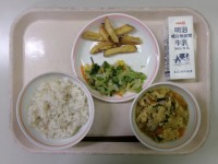 11月12日(水)チキンカレーライス牛乳元気サラダミニトマト(食文化) 今日のめ...