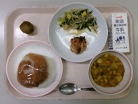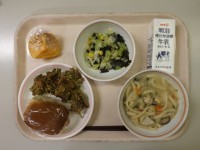 1月10日(月)あぶたま丼牛乳青菜のごまドレッシングあえミルクかりんとう(食文化...
