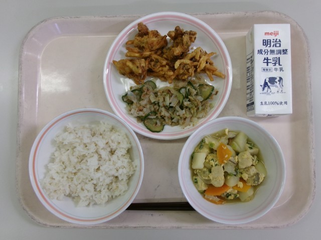 正解は、豆腐やきなこなどの食材になる他、みそやしょうゆなど調味料にもなります。今日の給食だと、納豆のかき揚げの納豆と大豆、高野豆腐の卵とじの高野豆腐ですね。いろんな料理で大活躍の大豆を、残さずしっかり食べましょう。