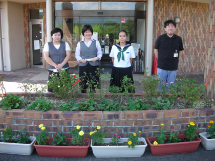 1、2年環境委員の生徒が、心を込めてプランターづくりをしました。植えた花を橋本病院とふたな荘に寄贈しました。水やりするのを楽しみにしているお年寄りの方が喜んでくれることを願っています。