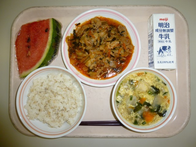 今日は、旬のすいかを食べて水分や栄養をとり、夏の暑さから体を守りましょう。