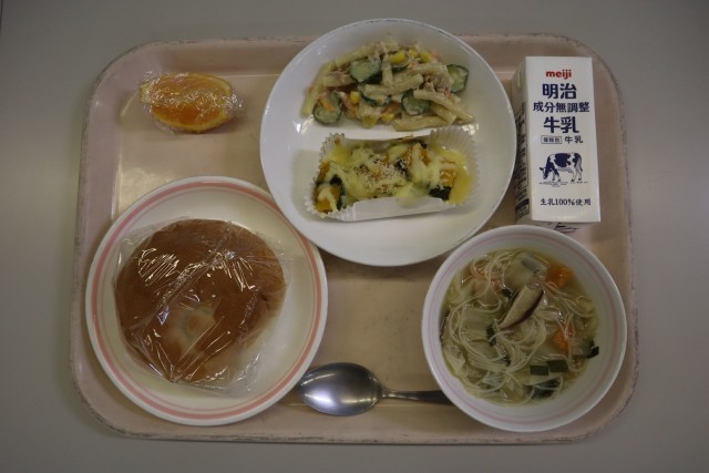 私たちの体は、毎日、毎食の食べた物からできています。そのため、成長期を迎え、大人になるための体を作る準備をしっかりしておかなければならない皆さんには特に食事の内容が大切です。色々な栄養素が必要ですが、現代の日本人が不足しがちだと言われているのが「鉄」です。鉄には肉や魚などの動物性 食品に多く含まれる「ヘム鉄」と、野菜や豆類などの植物性 食品に含まれている「非ヘム鉄」があります。「ヘム鉄」は体内に入ると吸 収しやすく、「非ヘム鉄」は体内の酵素の助けを借りて体内に吸 収されます。今日の給食では、「ヘム鉄」を含むあさりや「非ヘム鉄」を含む緑黄色野菜を使っています。しっかりかんで、胃酸を分泌させることで鉄分の体内への吸 収をより良くする助けになります。しっかりかんで食べましょう。