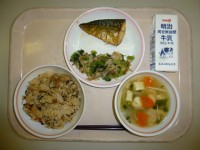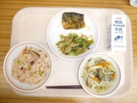 6月16日(月)の給食たこ飯牛乳鯖の香味焼きチンゲン菜のおひたしなすとふしめん汁...