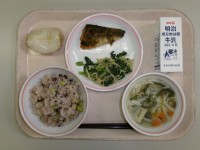 9月24日(水)の給食萩ご飯牛乳鯖のねぎみそかけチンゲン菜とたくあんのごまあえな...