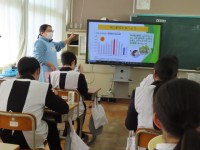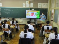 11月21日(金)、給食センターの栄養教諭の先生に来校いただき、給食の時間を使...