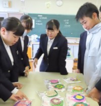 2年生は、家庭科の時間にポーチをつくりました。ポーチは、コスモスプラザ利用者の...
