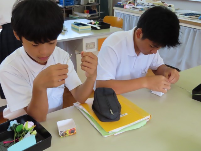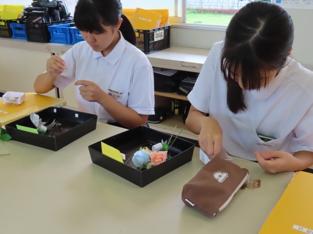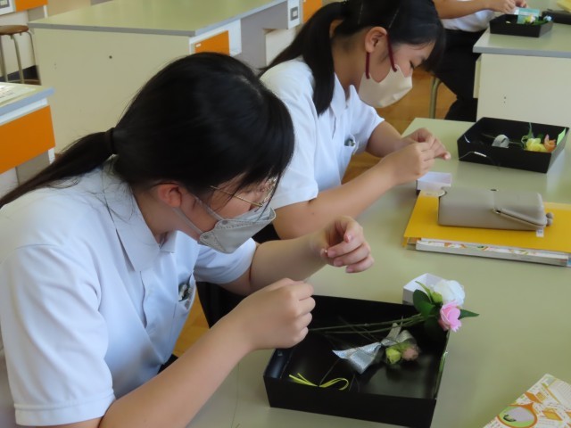 9月19日(金)、3年生は家庭科の授業でコサージュ作りをはじめました。