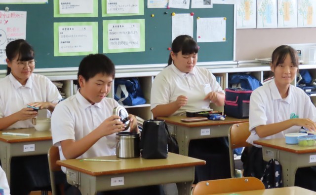 お昼ご飯は、お弁当です。給食の時間とは違う、嬉しそうな顔が見られました。