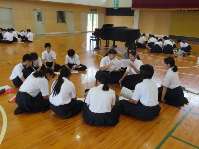 歌った後には、パートごとに話し合い活動を行いました。