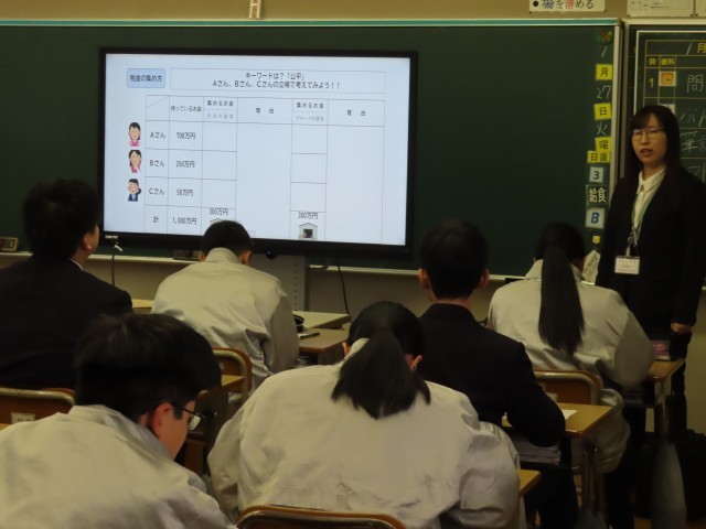 1月27日(火)、3年生は税務署の方に来校いただき、税の出前授業を行いました。