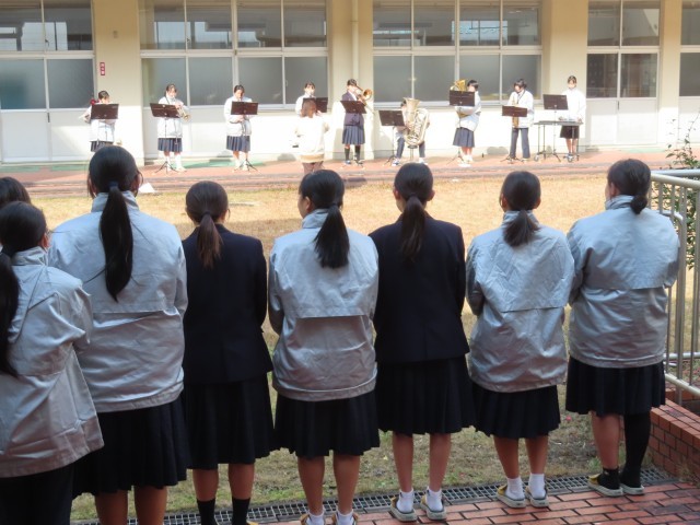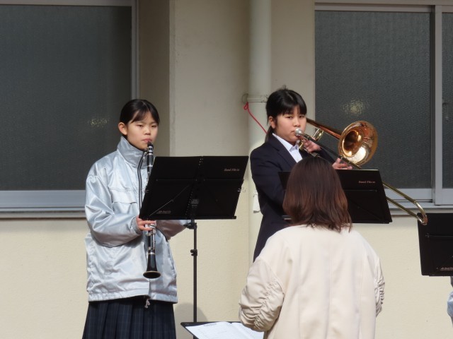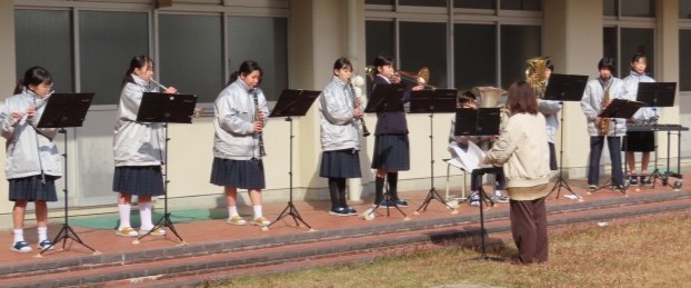 1月27日(火)の昼休み、吹奏楽部が中庭でウインターコンサートを行いました。