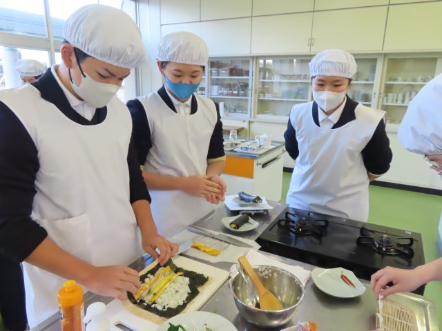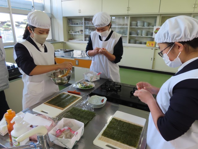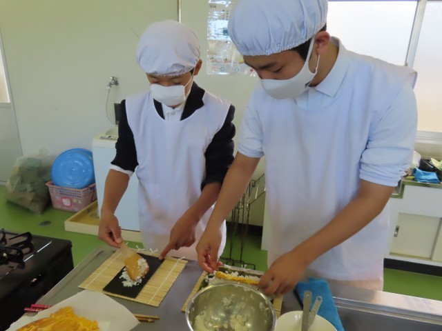 3年生は、家庭科の時間に「合格巻きずし」を作りました。