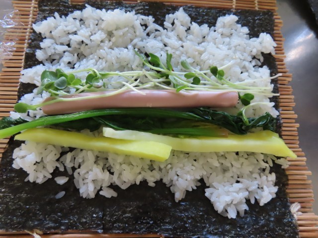「受検に合格!」を願って、巻きずしの中には5種類の具材を入れて巻きました。