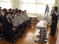 英語弁論大会に向けて、練習の成果を全校生の前で発表しました。