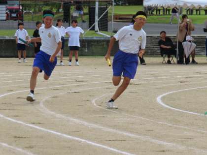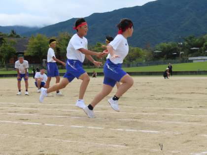 縦割りチームによる混合リレーの様子です。